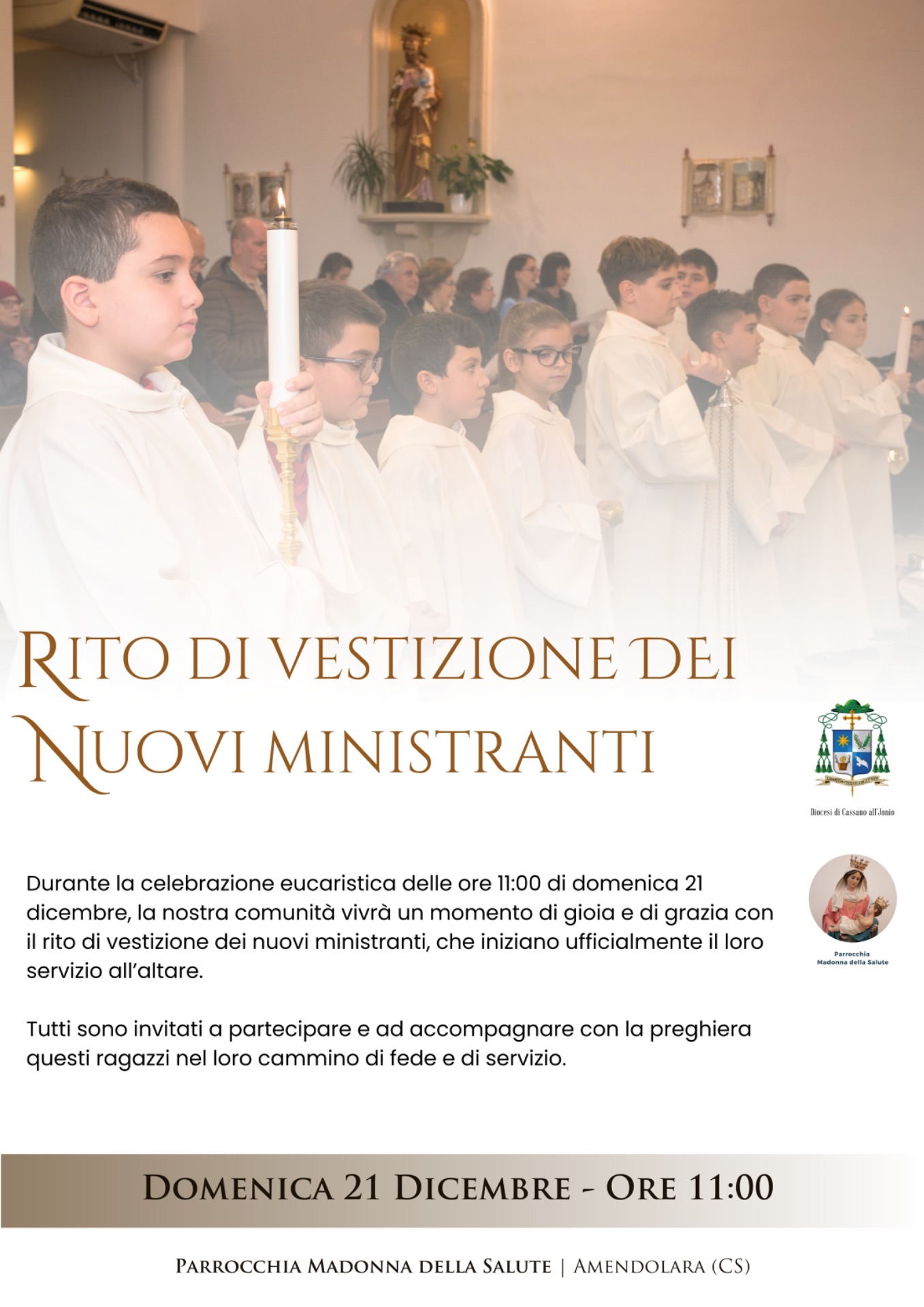 Un segno di speranza e di continuità nel servizio all'altare sarà al centro della Santa Messa di domenica 21 dicembre, alle ore 11:00, con il rito di vestizione dei nuovi ministranti.