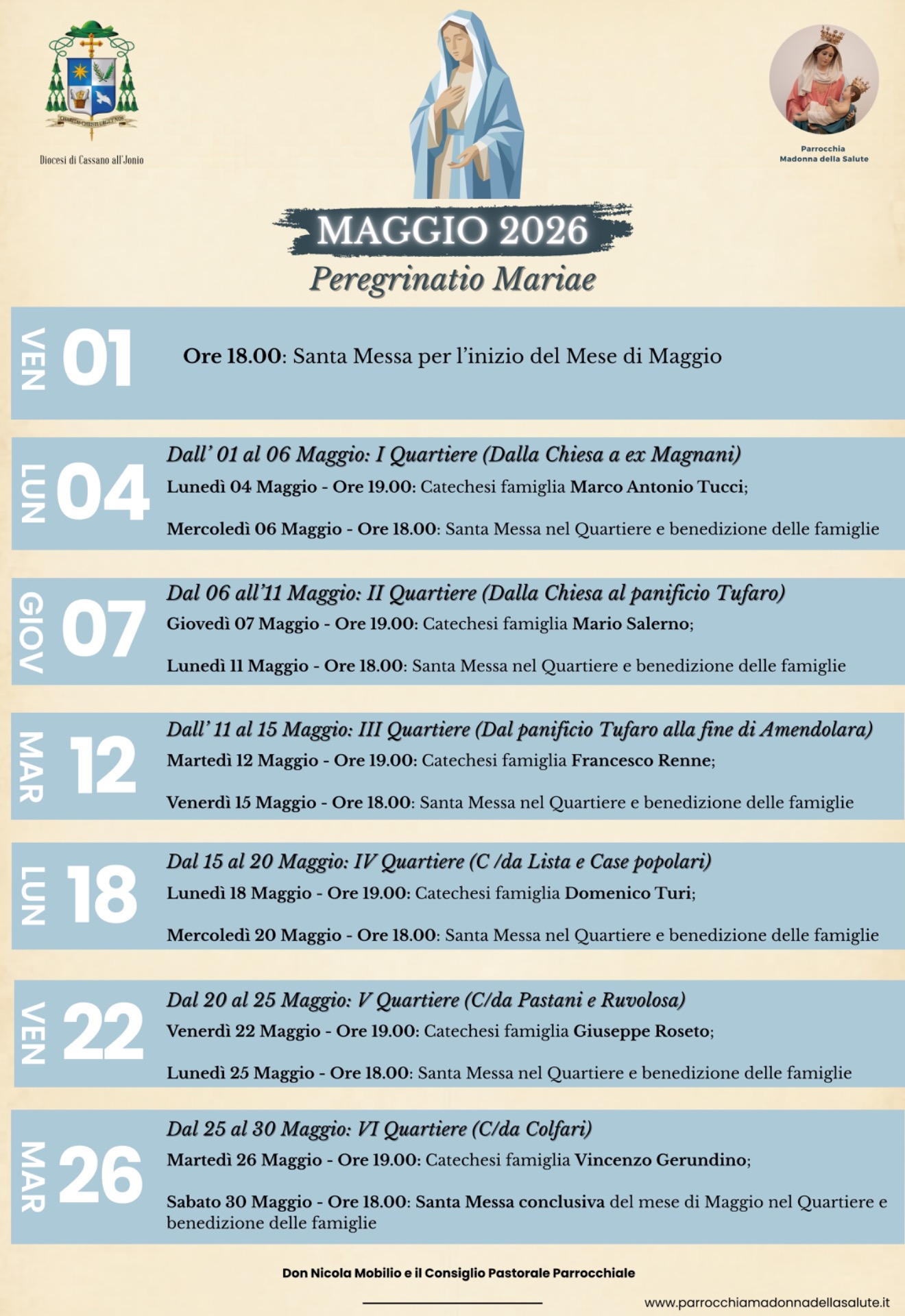 Il tempo di Pasqua non è solo il ricordo di un evento passato, ma una gioia da vivere e annunciare nel presente. Con questo spirito, la parrocchia della Madonna della Salute si prepara a vivere uno dei momenti di preghiera più intensi e suggestivi della primavera: la Via Lucis.